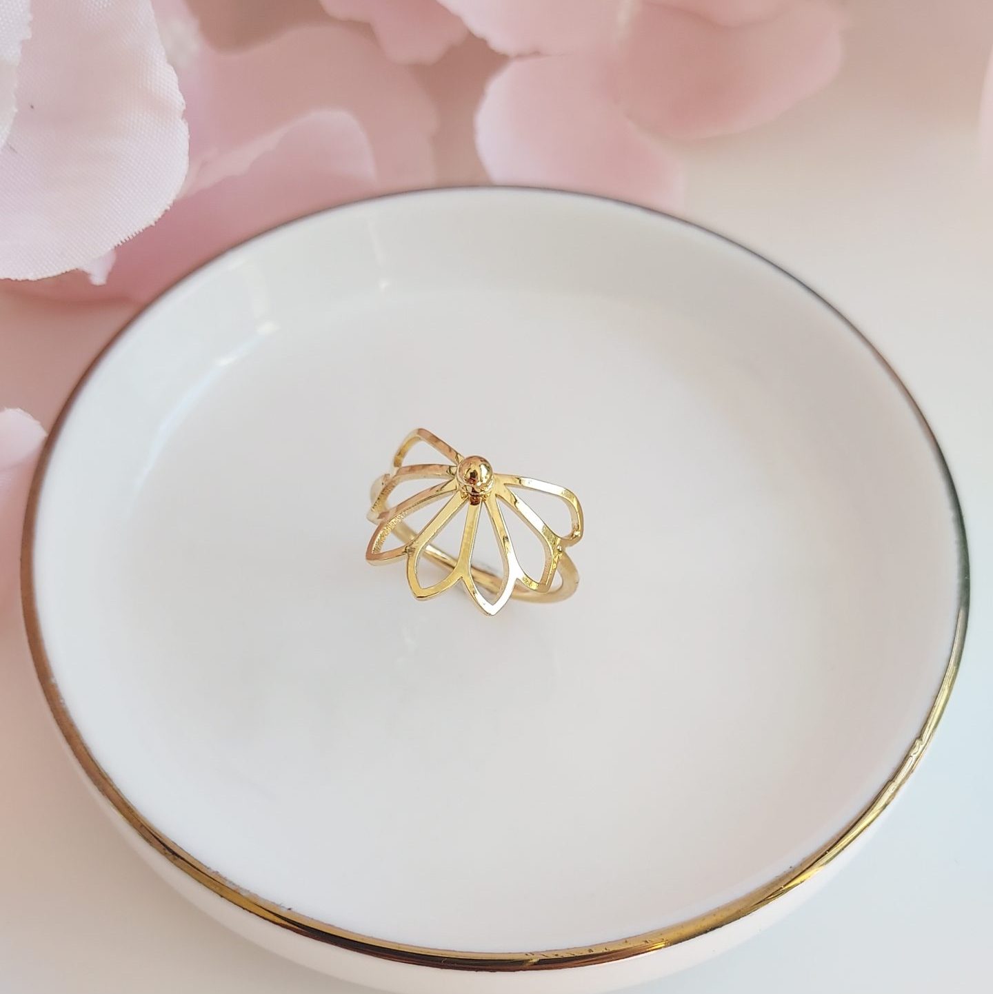 Cette bague fleur de lotus s’inspire des lignes élégantes du style art déco et de la poésie des fleurs. J’ai imaginé ce bijou à l’esprit bohème chic pour celles qui aiment les pièces inspirées de la nature et qui ne passent pas inaperçues.