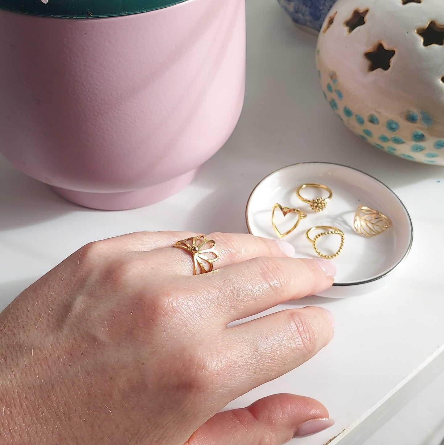 Je réalise chaque bague entièrement à la main dans mon atelier, en utilisant les techniques traditionnelles de bijouterie. Une fois façonnée, je la confie à un doreur local, qui applique une dorure à l’or 18 carats (3 microns) pour créer un bijou lumineux et durable.